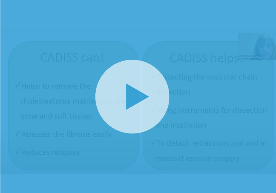 « CADISS has become an important instrument for my daily surgery to deal with tympanic membrane retractions, primary and recurrence of middle ear cholesteatomas. It is an easy instrument to use and helps remove the whole disease form the middle ear. Looking forward to get more experience with it! »